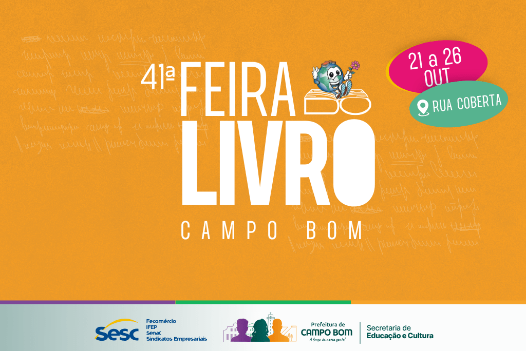 Campo Bom já se prepara para viver mais uma grande festa da literatura, da cultura e da imaginação. De 21 a 26 de outubro, a Rua Coberta será o palco da 41ª Feira do Livro de Campo Bom, promovida pela Administração Municipal, por meio da Secretaria de Educação e Cultura, em parceria com o Sesc Novo Hamburgo.