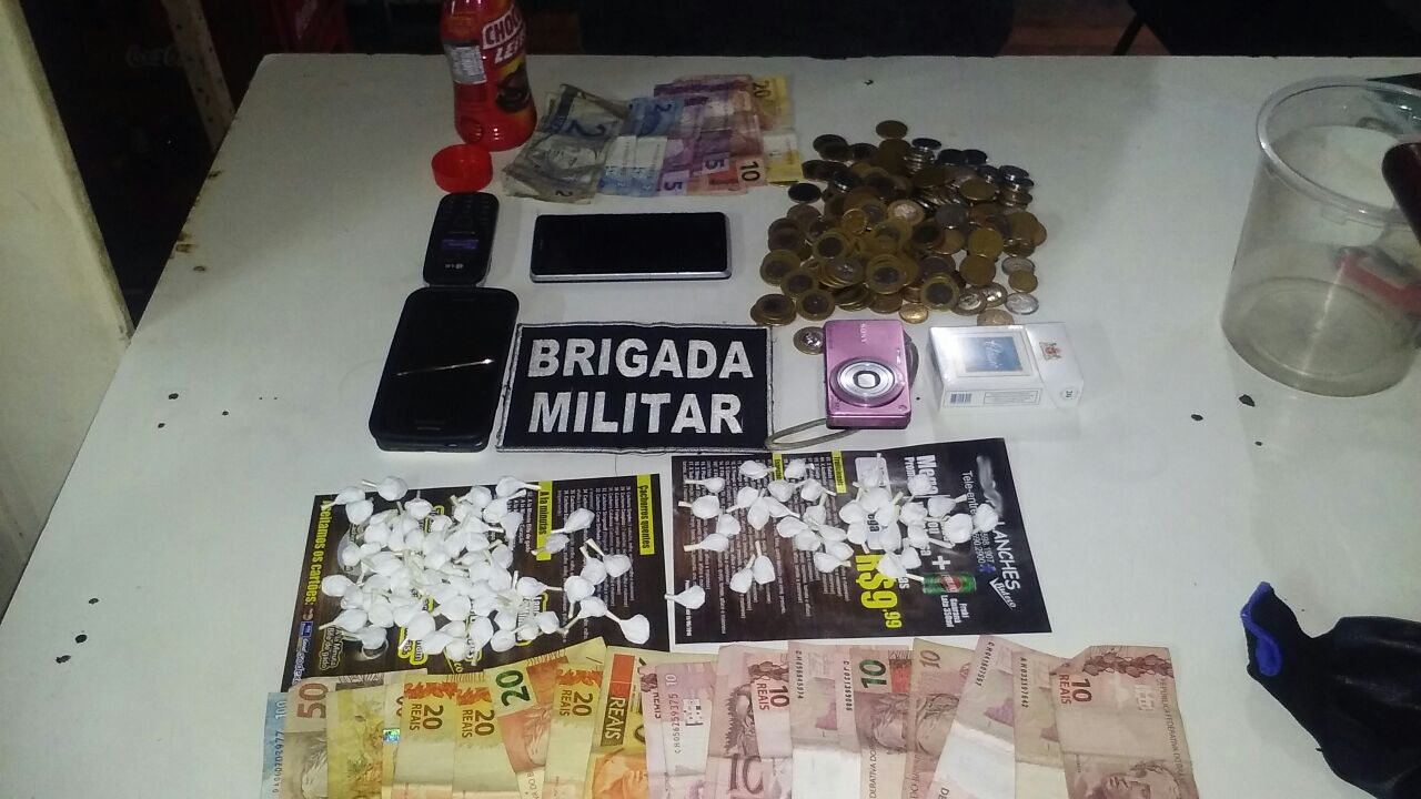 Foram apreendidos 99 papelotes de cocaina, 02 celulares sansung, 01 celular LG, 01 câmera fotográfica Sony Cyber shot e R$ 577,15.