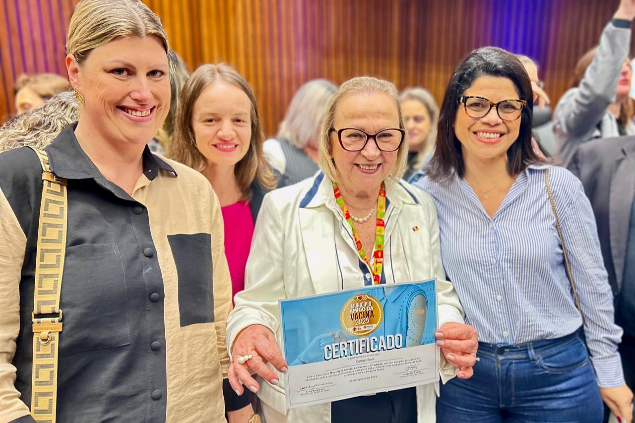 Campo Bom recebeu nesta quarta-feira (20/08), o selo ouro de Município Amigo da Vacina 2025, por estar entre as cidades que atingiram metas de vacinação no ano passado. A iniciativa do Governo do Estado, por meio da Secretaria da Saúde, em parceria com o Ministério Público do Estado do Rio Grande do Sul, destaca a cobertura de três imunizantes: pentavalente, tríplice viral e HPV.