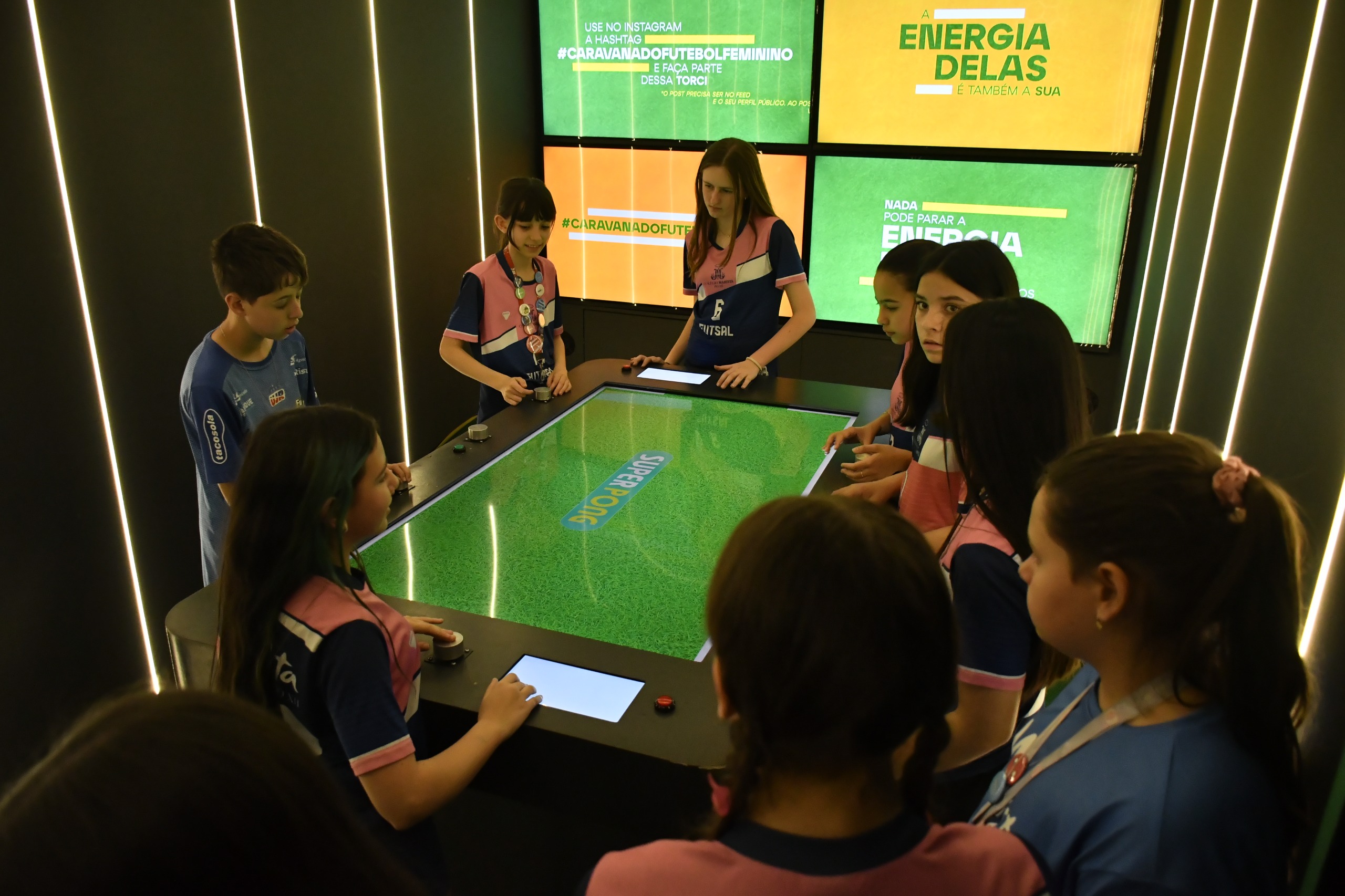 Entre as alunas que visitaram a caravana com o grupo estão Júlia Lopes, 13 anos, e Nicole Castro, 14. “Acho muito importante incentivar tanto o futsal quanto o futebol feminino. Muitas meninas têm vontade de jogar. Eu, por exemplo, pratico desde pequena com meu pai e meu irmão. Todo mundo deveria experimentar um pouco disso”, comenta Júlia, ressaltando o reconhecimento dado à história da modalidade.