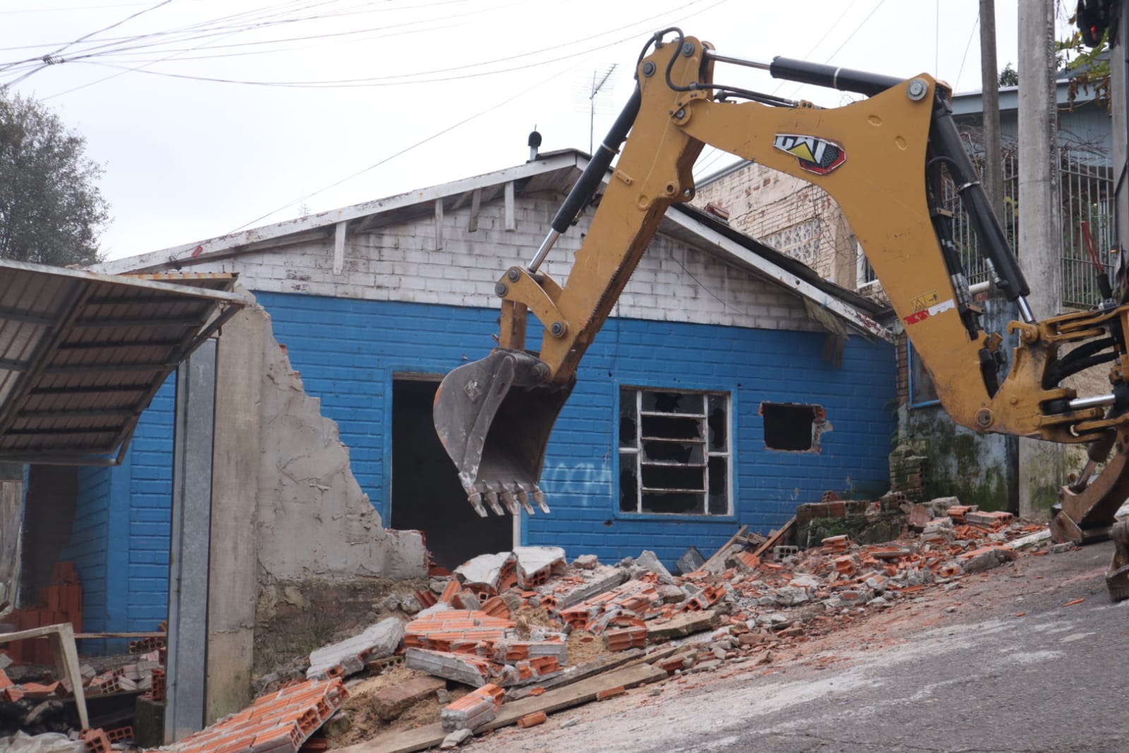 A pedido da Brigada Militar, a Prefeitura, por meio da Secretaria de Meio Ambiente e Desenvolvimento Urbano (SMMADU), demoliu duas casas abandonadas na Rua Roca Sales, bairro Rondônia, na manhã desta quinta-feira (24/07).