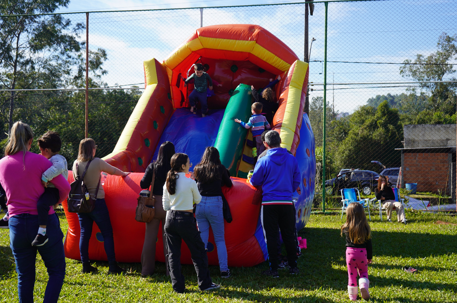 A programação incluiu brinquedos infláveis, pintura de rosto, jogos como goleirinha e taco, em espaço acolhedor onde as famílias puderam aproveitar a manhã com lazer e convívio. Também a equipe de vacinação da Secretaria Municipal da Saúde esteve presente, disponibilizando o imunizante contra a gripe.