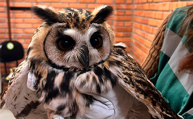 Uma coruja-orelhuda (Asio clamitor), macho adulto, foi resgatada pela equipe da Diretoria de Proteção Animal (DPA), da Secretaria Municipal de Meio Ambiente e Desenvolvimento Urbano (SMMADU), após colidir contra a vidraça de um edifício no bairro Ideal, em Novo Hamburgo. O chamado chegou nas primeiras horas do expediente de sexta-feira (07/11), mobilizando rapidamente grupo responsável pelo atendimento a animais silvestres.