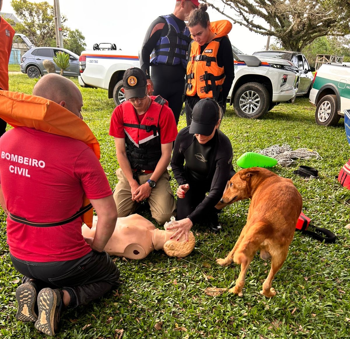O treinamento envolveu atendimento pré-hospitalar dentro e fora d’água, resgate de vítimas em afogamento, embarque e desembarque de barco dentro da água, técnicas de nado básico e uso de equipamentos necessários para resgate.