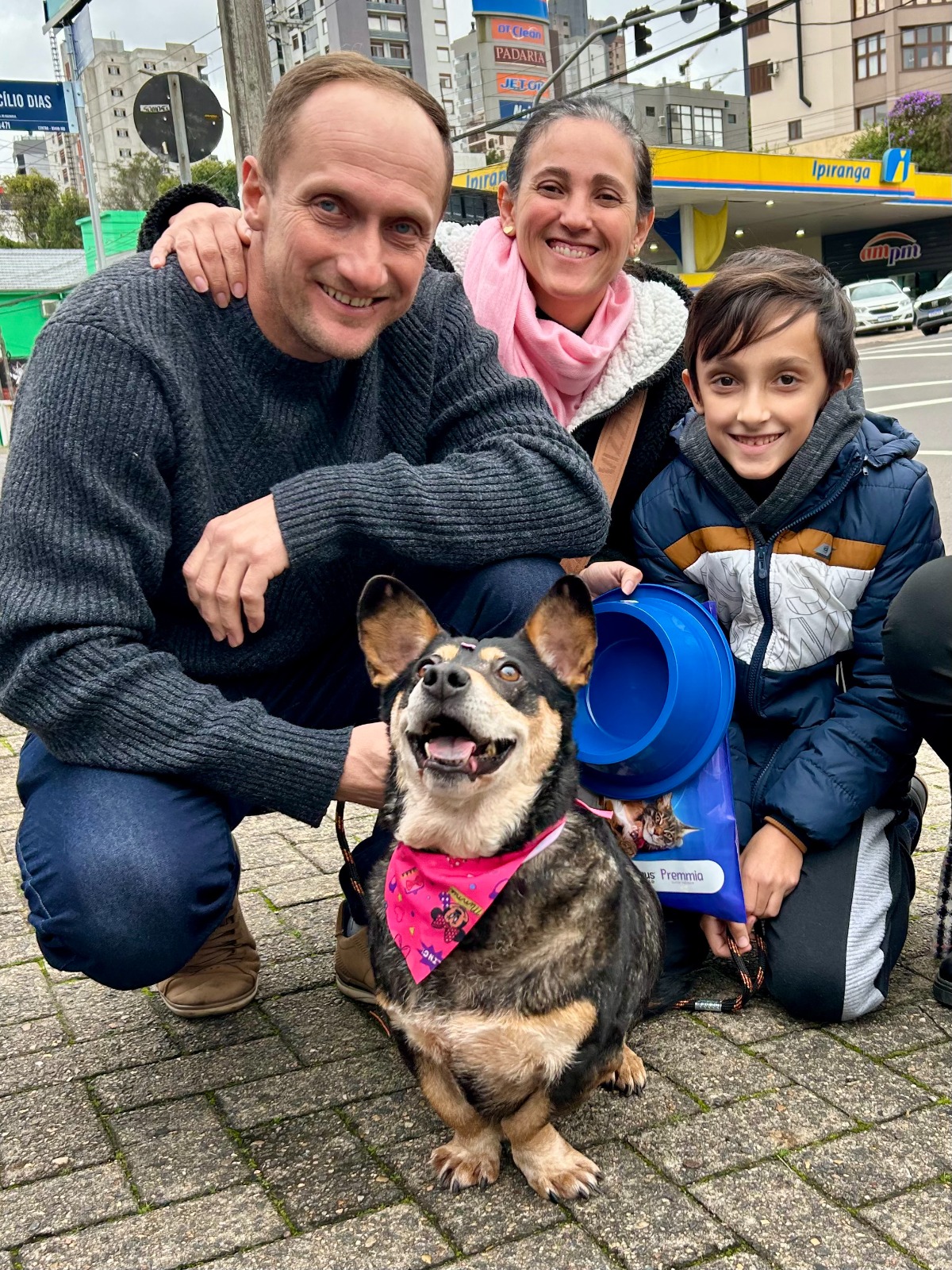 A família de Lídia Silva, 44 anos, e Altair Wickert, 41, hoje foi até o CEMPRA, no bairro Lomba Grande, para conhecer João, um outro cão que tem três patas, divulgado pelo perfil do Bem-Estar Animal. Ocorre que o espaço não recebe visitas. Então, eles decidiram passar pela feira e, ao verem Derci, foi amor à primeira vista. “Sobre a Derci, acho que foi ela quem nos escolheu. Logo de cara nos encantamos por ela, mas, ao saber que estava há cinco anos no abrigo, não tínhamos como não trazer ela conosco”, conta Lídia. “Saber que podemos dar a ela uma família, muito amor e carinho, não tem preço”, finaliza. O casal tem dois filhos, Gabriele, 18, e João, 9. Além disso, a família ainda conta com os companheiros de quatro patas: Luke, um cachorro de 6 anos; Theodoro, de 3 anos; e a Celeste, uma gata de 1 ano.