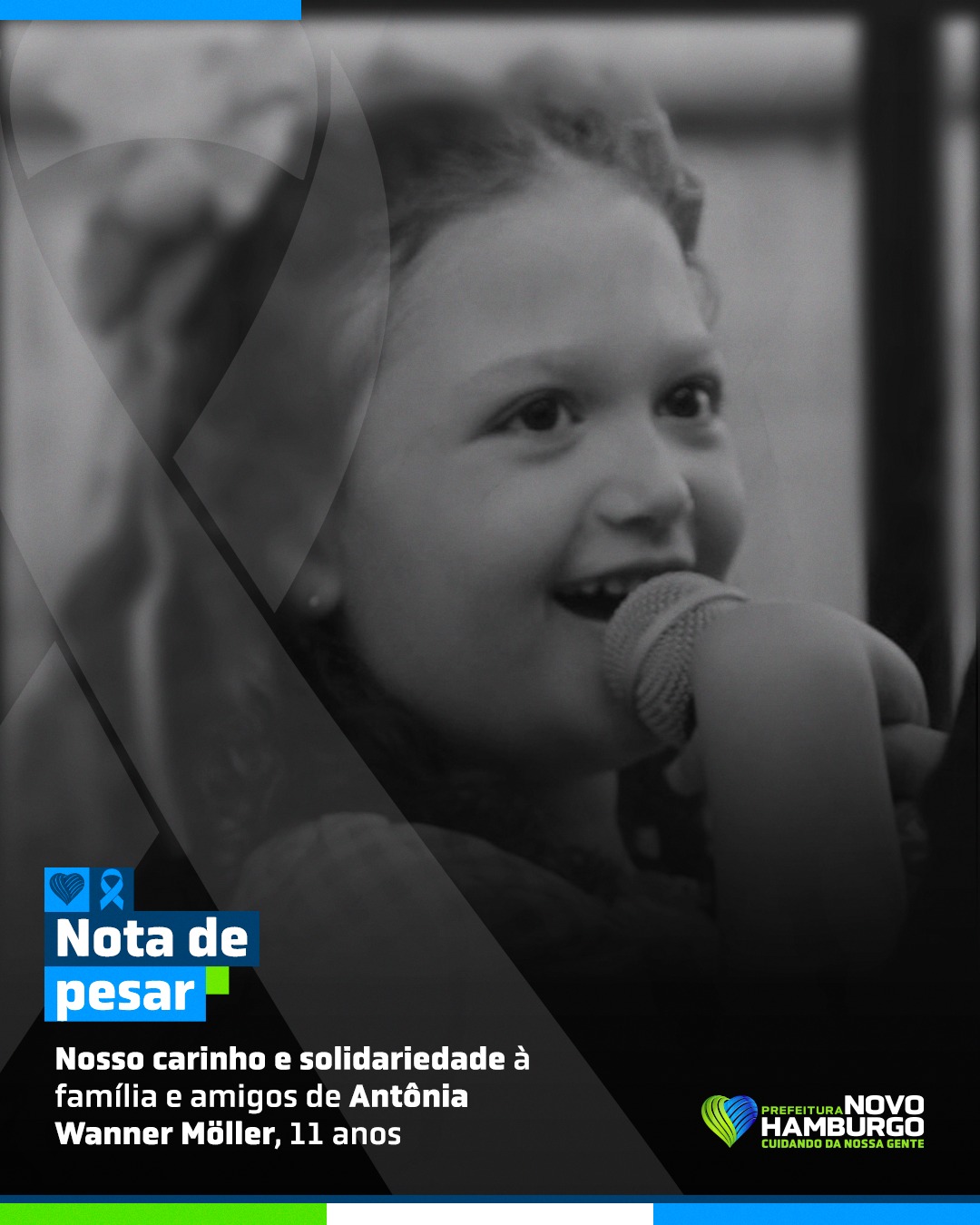 É com pesar que a Prefeitura de Novo Hamburgo e a Secretaria Municipal de Educação (SMED) lamentam a morte de Antônia Wanner Möller, falecida ontem (1º/10), aluna da Escola Municipal de Educação Básica (EMEB) Vereador João Brizolla, bairro Canudos.