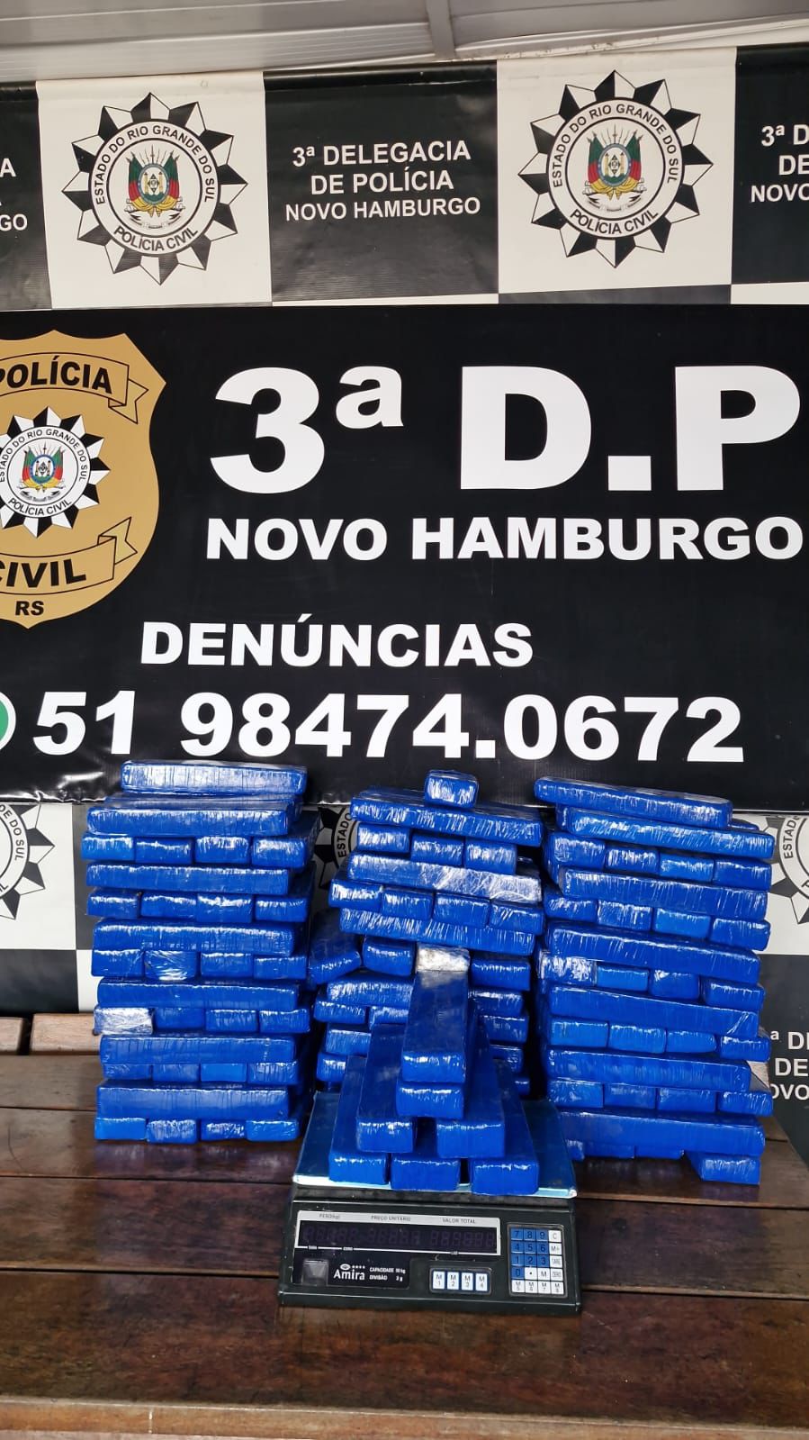 A Polícia Civil, por meio do setor de investigações da 3ª DP de Novo Hamburgo, comandados pelo Del. Alexandre Quintão, apreendeu na tarde desta terça-feira (14/10) 108 quilos de maconha. A ação ocorreu na Rua Ana Marçal Ramos, bairro Canudos, em Novo Hamburgo. Os entorpecentes estavam escondidos dentro de uma residência em um beco na referida rua. Conforme a Polícia Civil, o morador e proprietário da droga não estava no local, mas já está identificado.