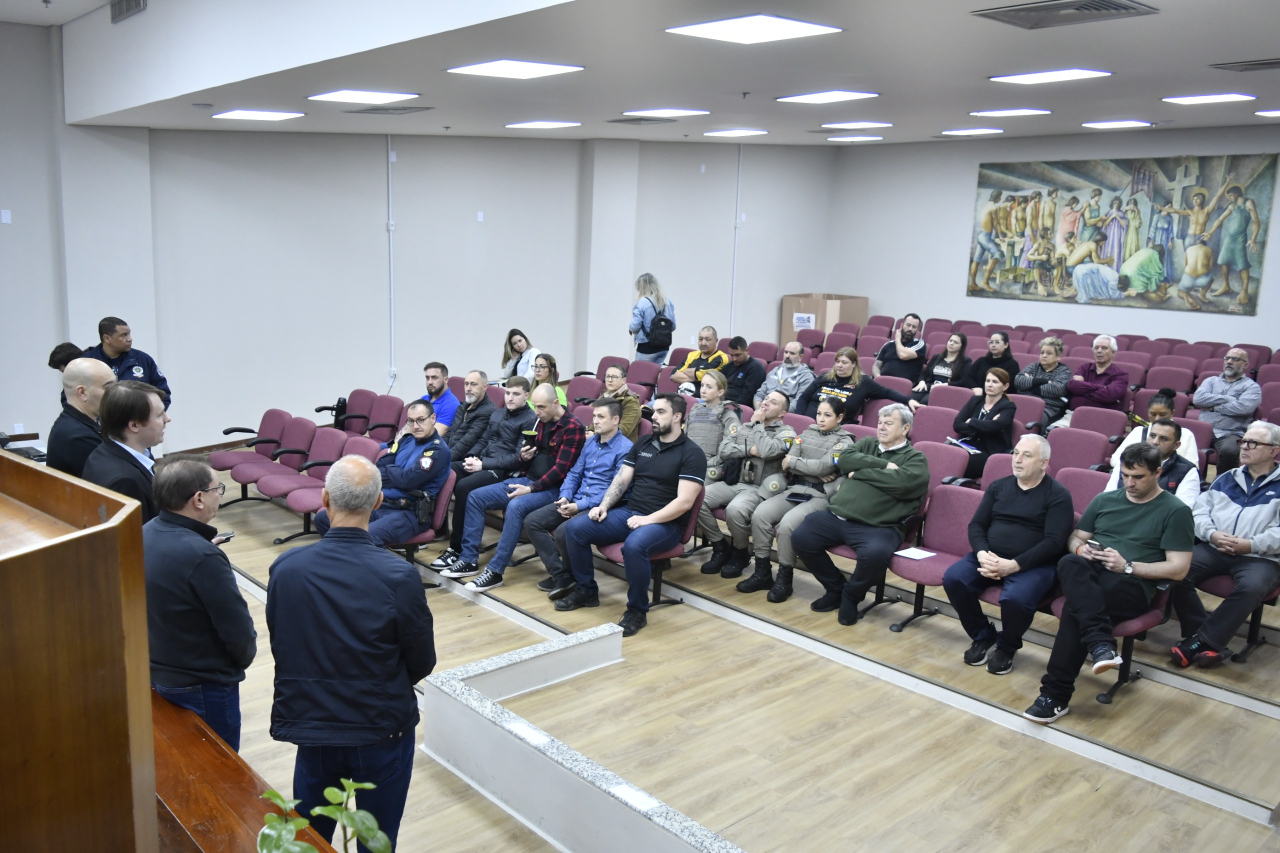 A Secretaria de Segurança Pública (SMSP) promoveu, nesta terça-feira (22/07), um encontro com as forças de segurança de Novo Hamburgo e comerciantes da área central do Município. A reunião ocorreu no auditório do 10º andar do Centro Administrativo Leopoldo Petry.