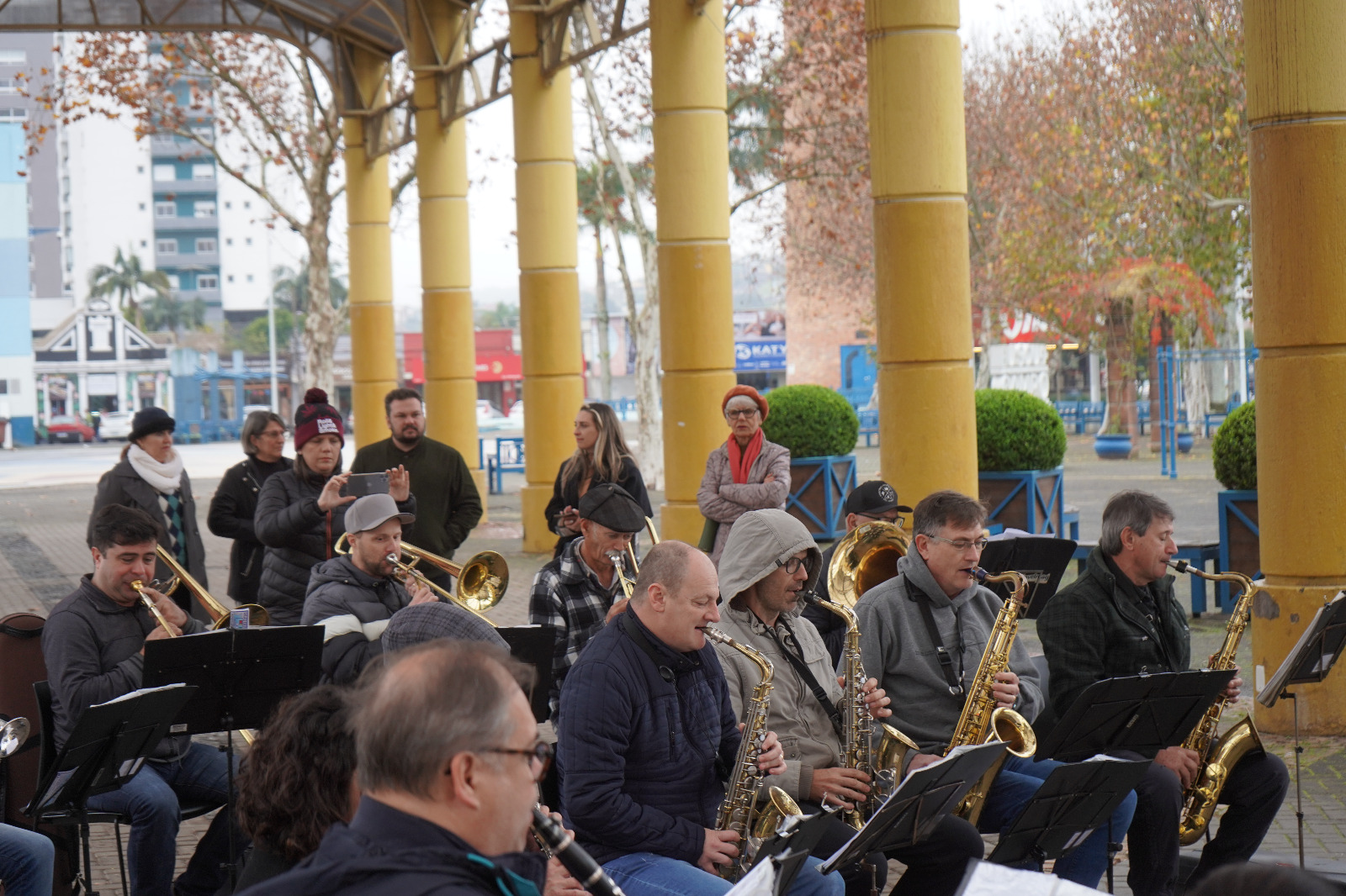 Sem medo da cerração e do frio, Banda Municipal fez ensaio aberto no Largo Irmãos Vetter