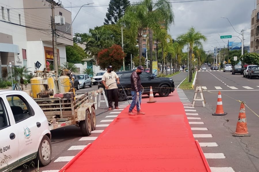 Com objetivo de oferecer mais segurança à população, a Secretaria Municipal de Obras, Planejamento e Serviços Urbanos de Campo Bom vem renovando e melhorando a sinalização horizontal nas principais e ruas e avenidas da cidade. O secretário Paulo Gomes informa que já foram pintadas as faixas de pedestres em frente às escolas. Na sequência, as avenidas Brasil e Independência e a rua Voluntários da Pátria receberam pinturas de solo, como faixas de pedestres, setas indicativas, marcas que separam pistas e áreas de estacionamento.